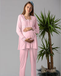 Maternity set– 3 pieces with Elegant Lace Details pink